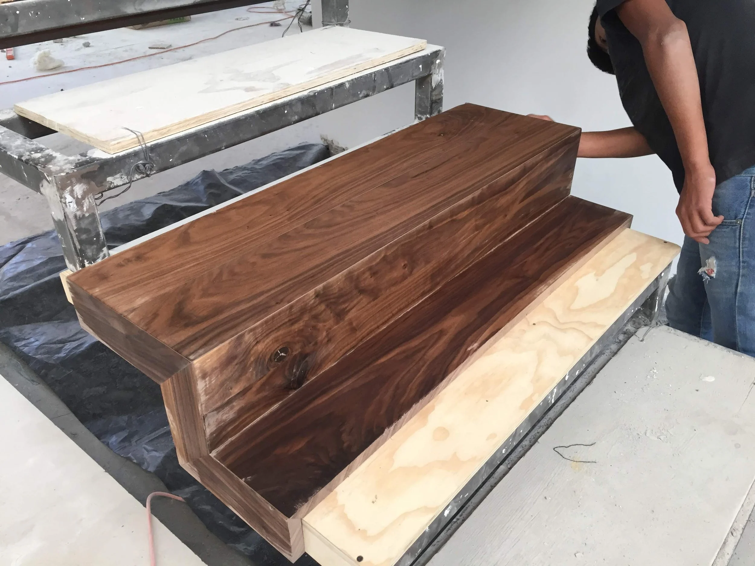 A unique challenge. To create a floating staircase made from a metal structure covered entirely with solid walnut wood, we had to assemble every corner in a perfect 45-degree joint. It was a job full of detail, but the final result made every minute spent on this stair valuable.